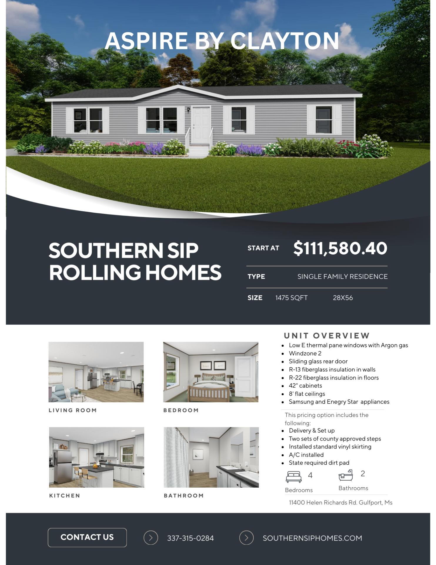 The Horizon / Aspire built by Clayton Savannah offers 1,475 sq. ft. of comfortable, modern living with 3 bedrooms and 2 bathrooms. Its open kitchen with a center island flows into the dining and living areas, creating a welcoming space for gatherings. The primary suite features a private bath and spacious closet, while the flex room and optional fourth bedroom add versatility. The Aspire combines practical design with stylish comfort, making it ideal for today’s lifestyle.