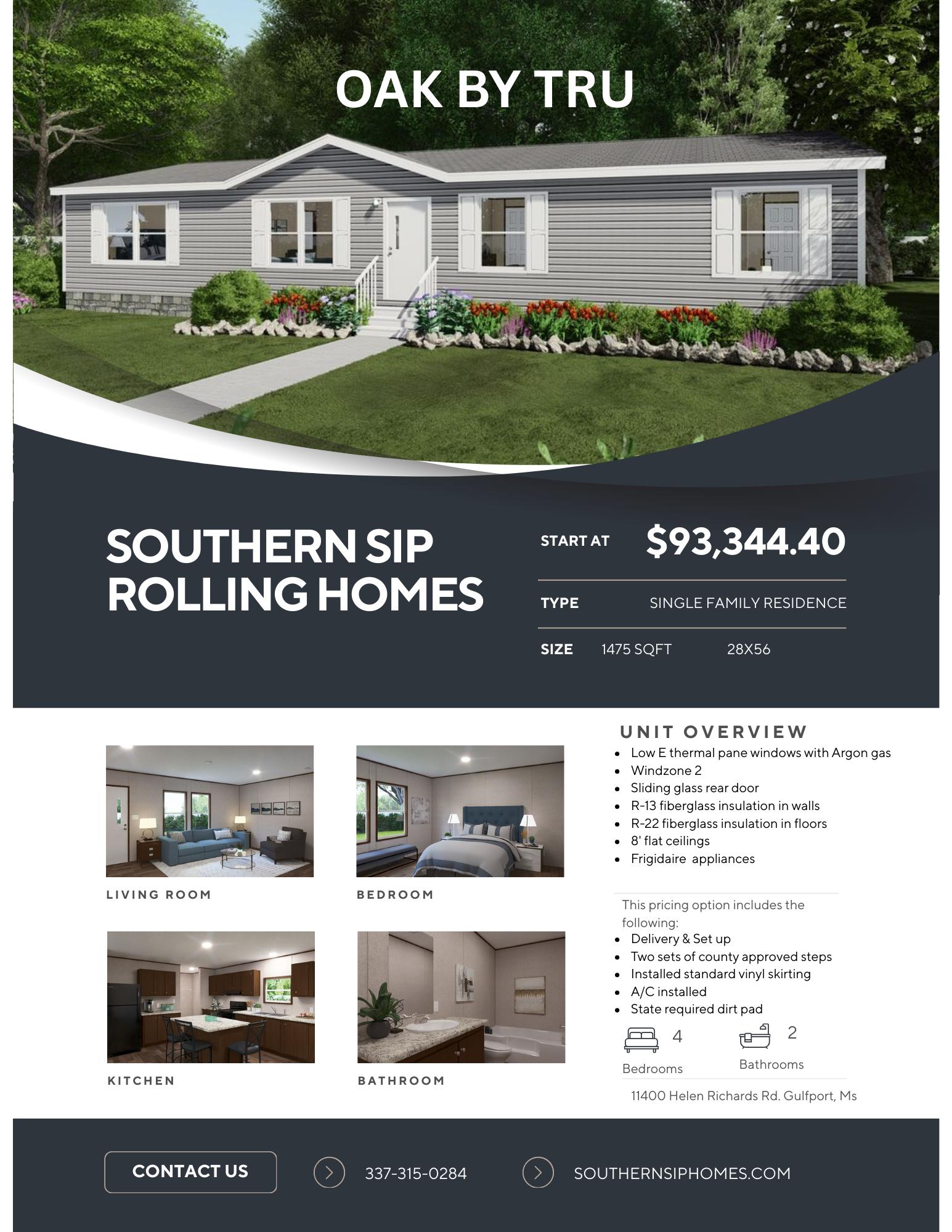 All sizes and dimensions are nominal or based on approximate builder measurements. Southern Sip Rolling Homes reserves the right to make changes due to any changes in material, color, specifications, and features anytime without notice or obligations.